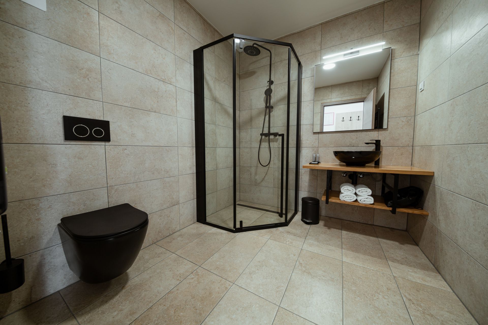 65m2 z balkonomZakonska postelja 200x2202 x enojna postelja 90x200LCD TV, wi-fi, klimoKopalnico z wc-jem, tušem, sušilcem za lase in osnovnimi higienskimi pripomočki.