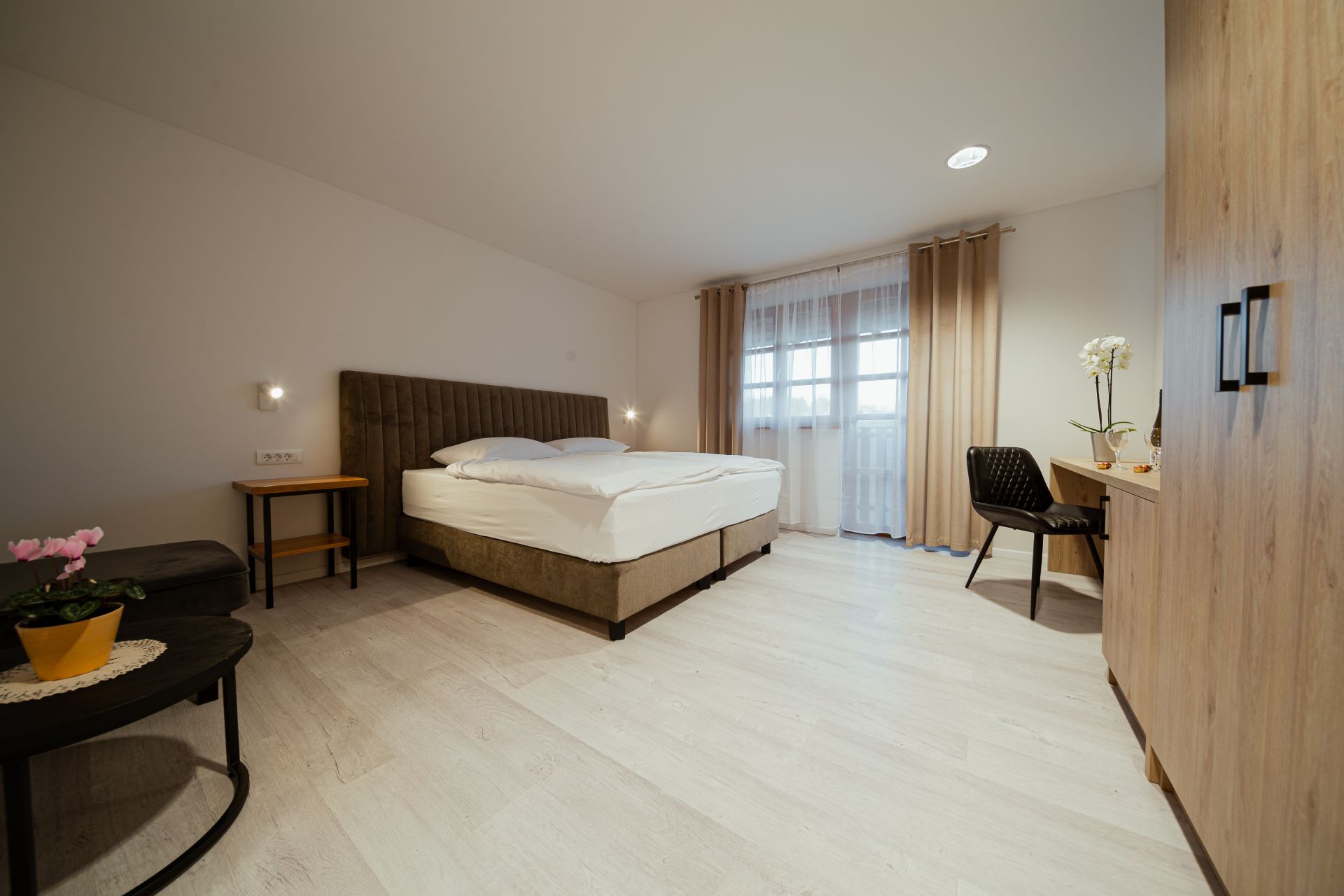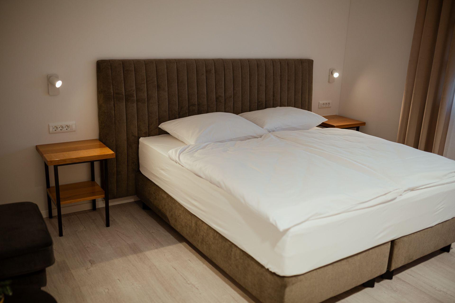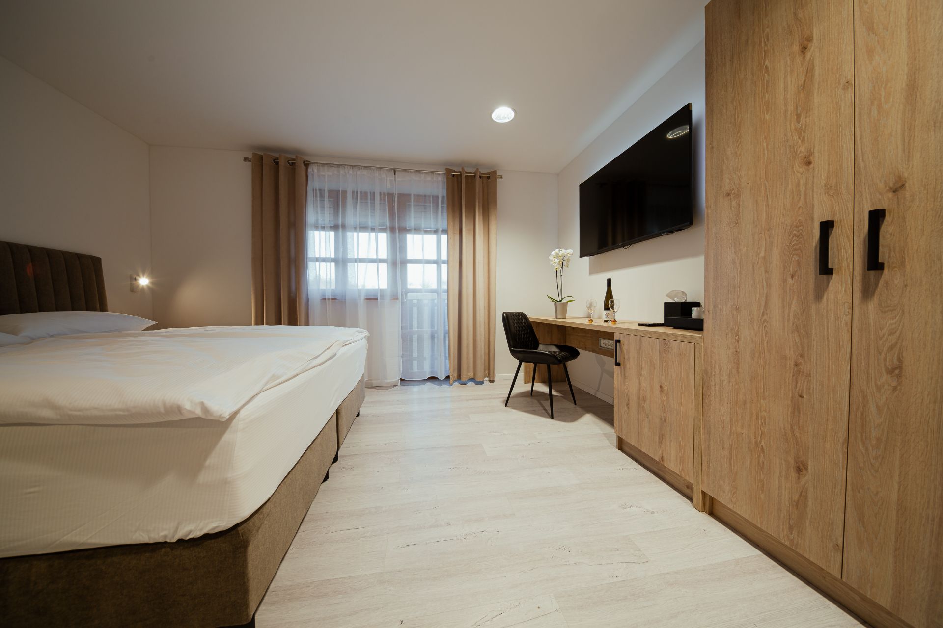 27m2Zakonska postelja 180x200Francoski balkonMožnost enega dodatnega ležiščaLCD TV, wi-fi, klimoKopalnico z wc-jem, tušem, sušilcem za lase in osnovnimi higienskimi pripomočki.